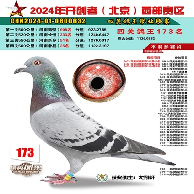 2024年开创者西部四关鸽王173名