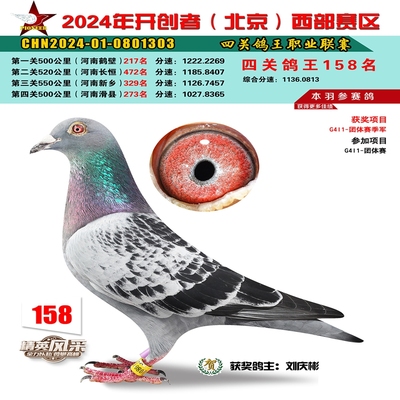 2024年开创者西部四关鸽王158名