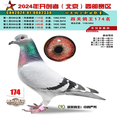 2024年开创者西部四关鸽王174名