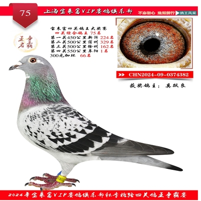 2024上海宝来富四关鸽王75名 已结束