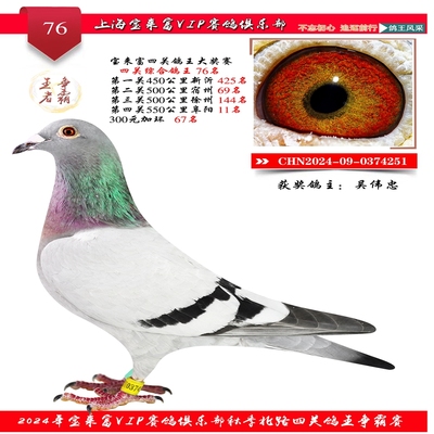 2024上海宝来富四关鸽王76名 已结束