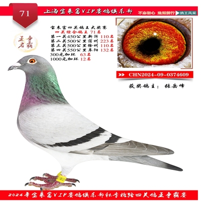 2024上海宝来富四关鸽王71名 已结束