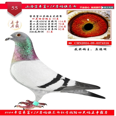 2024上海宝来富四关鸽王55名 已结束