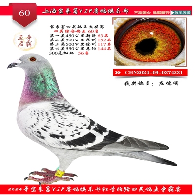 2024上海宝来富四关鸽王60名 已结束