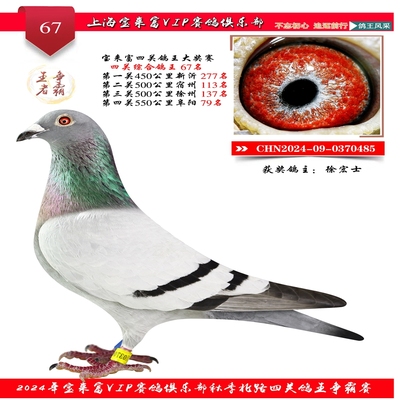 2024上海宝来富四关鸽王67名 已结束