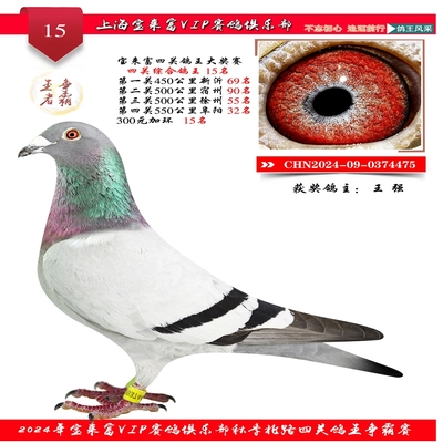 2024上海宝来富四关鸽王15名