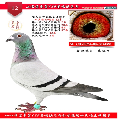 2024上海宝来富四关鸽王12名