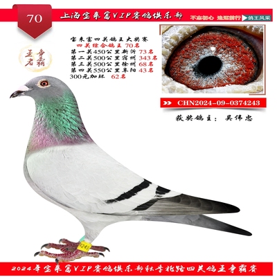 2024上海宝来富四关鸽王70名