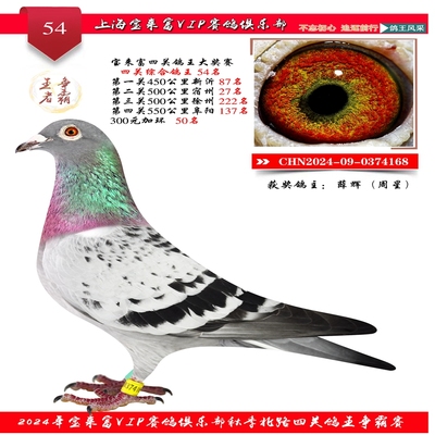 2024上海宝来富四关鸽王54名