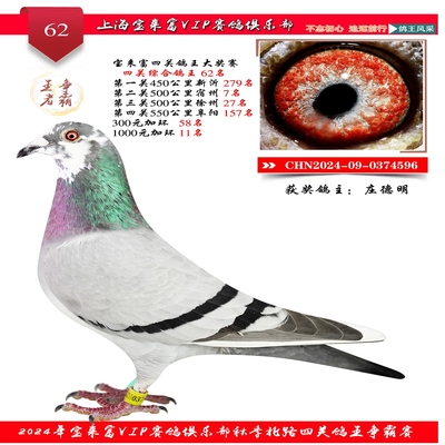 2024上海宝来富四关鸽王62名