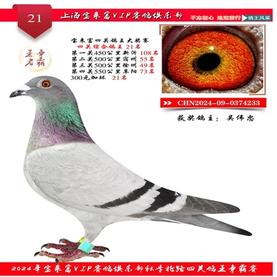 2024上海宝来富四关鸽王21名