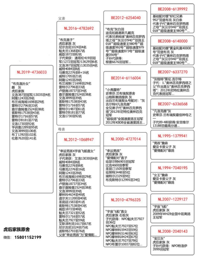新鸽上线,虎后家族布克直孙女,文洛387羽冠军,父亲布克直子,母亲幸运男孩配宇宙飞船直女。起拍价20000,保底价格3万,全包到家。