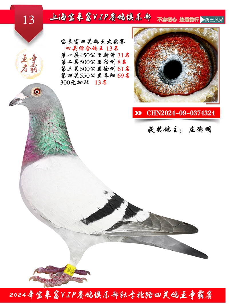 2024上海宝来富四关鸽王13名