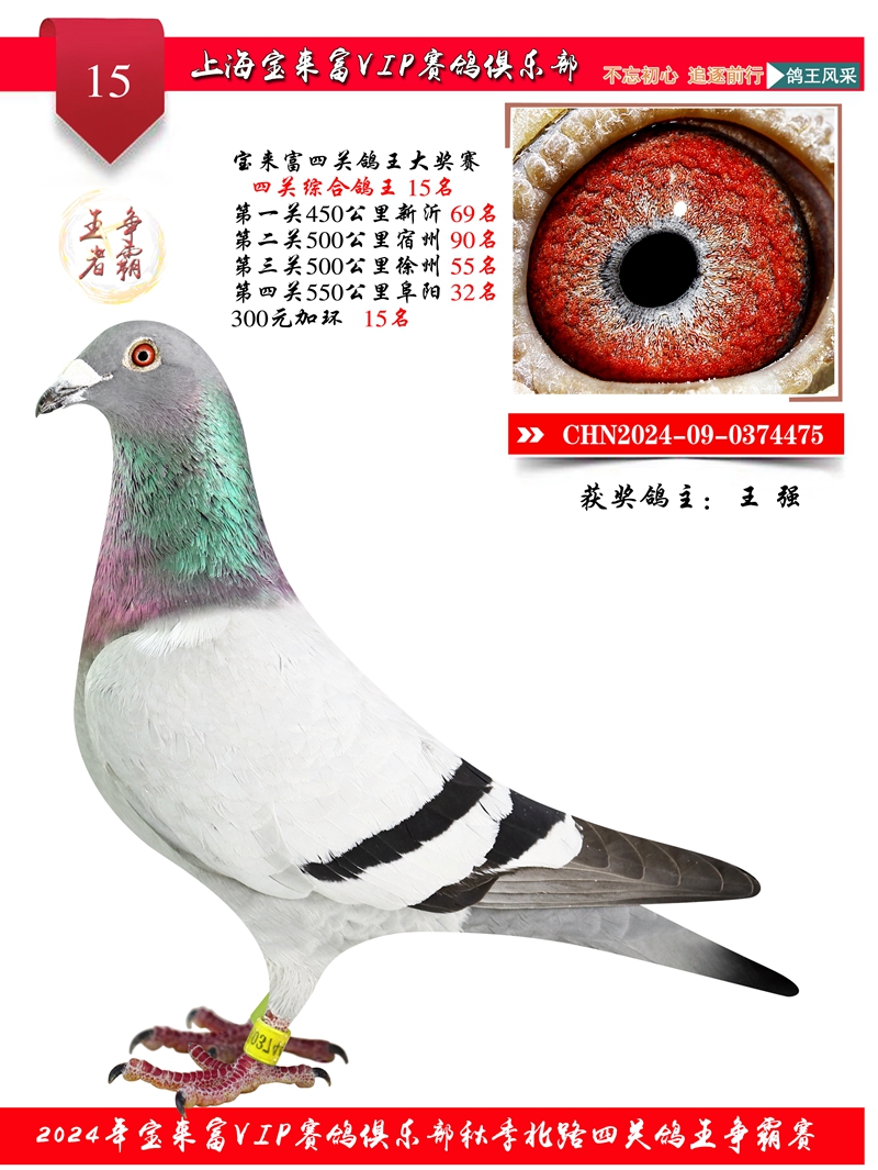 2024上海宝来富四关鸽王15名