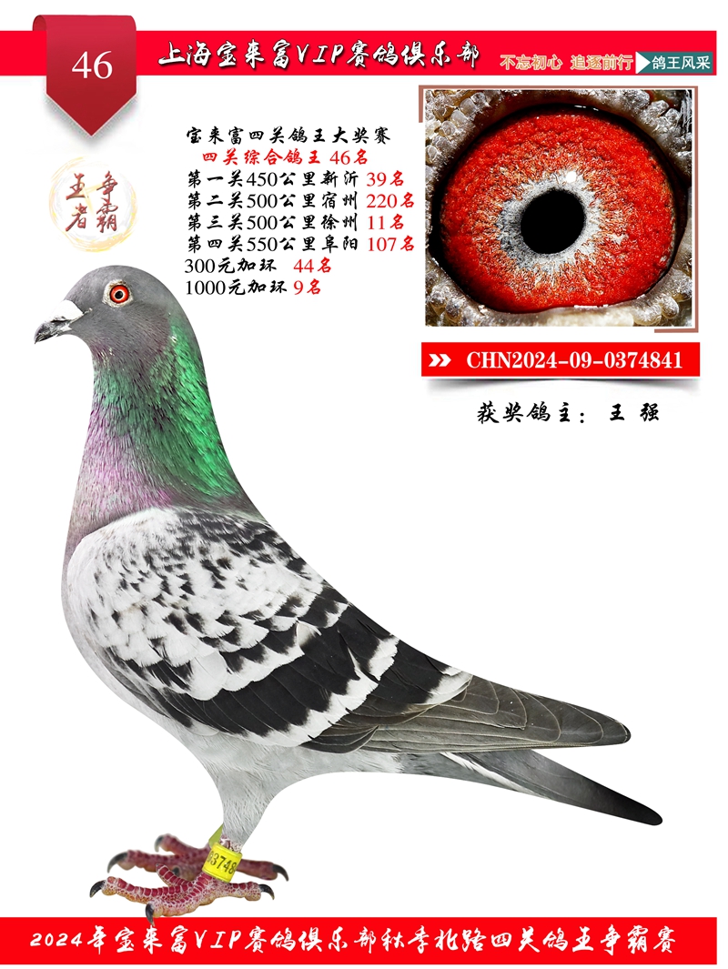2024上海宝来富四关鸽王46名