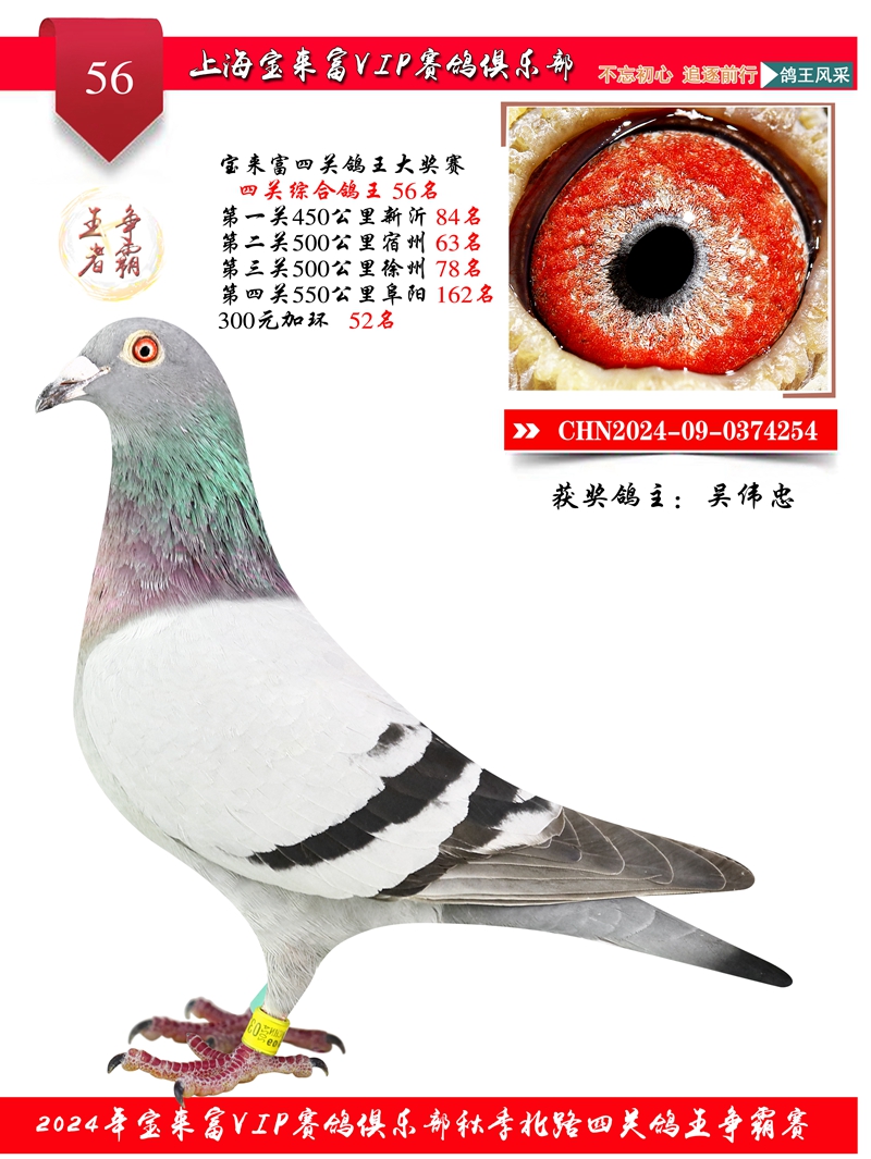 2024上海宝来富四关鸽王56名
