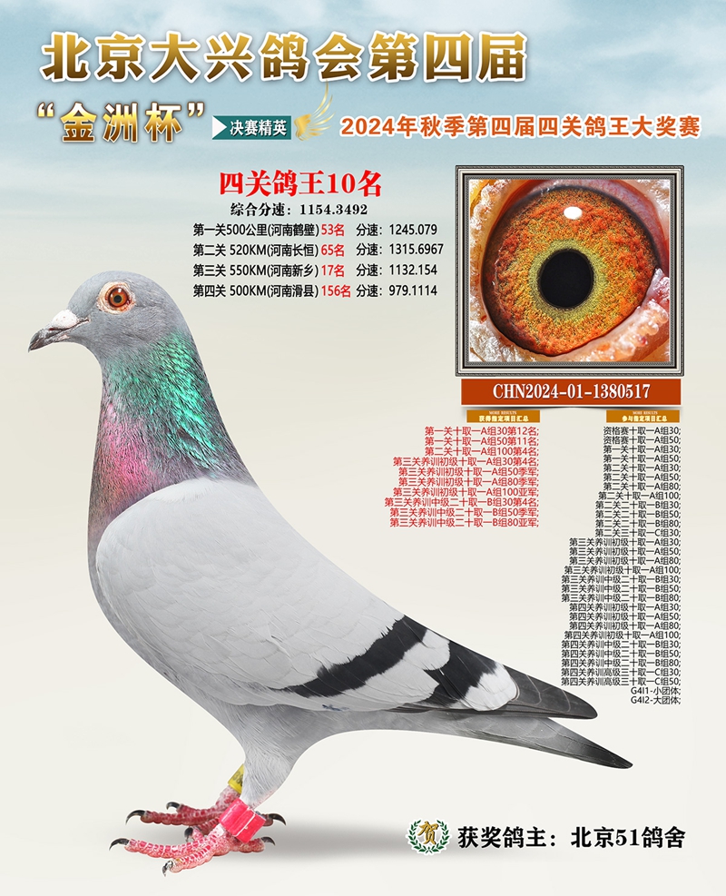 金洲杯四关综合鸽王10名