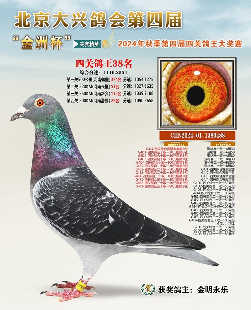 金洲杯四关综合鸽王38名