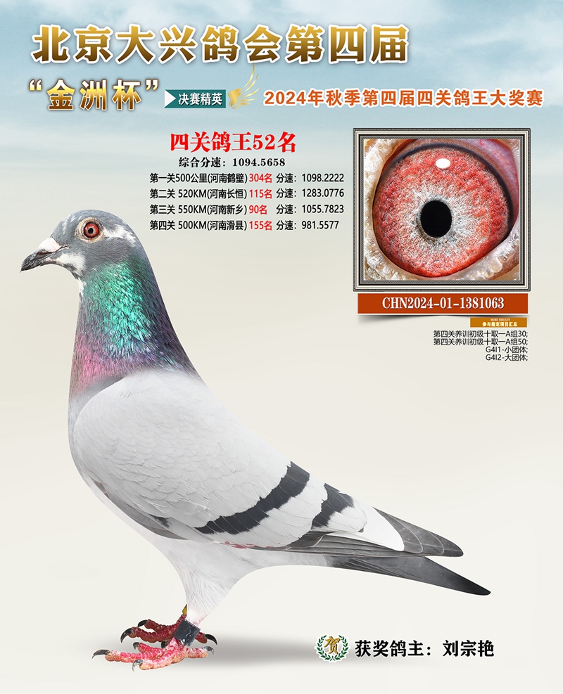 金洲杯四关综合鸽王52名