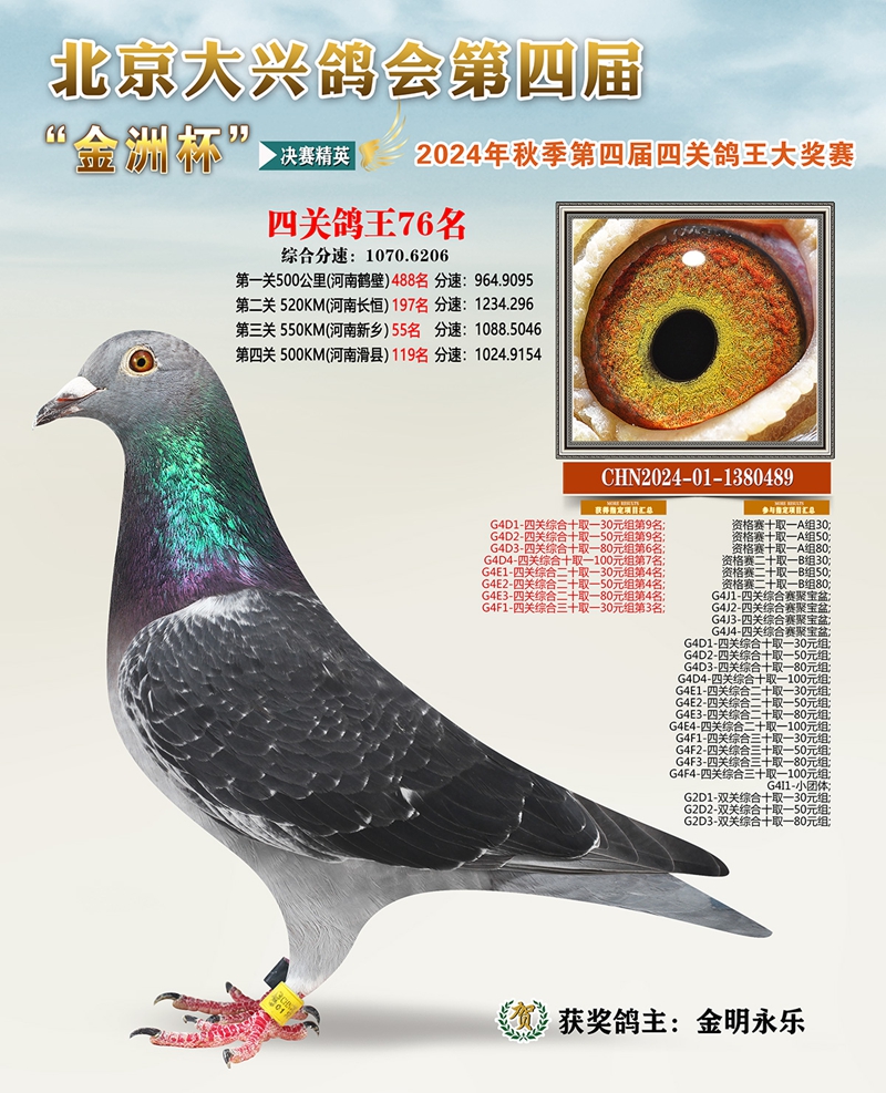 金洲杯四关综合鸽王76名
