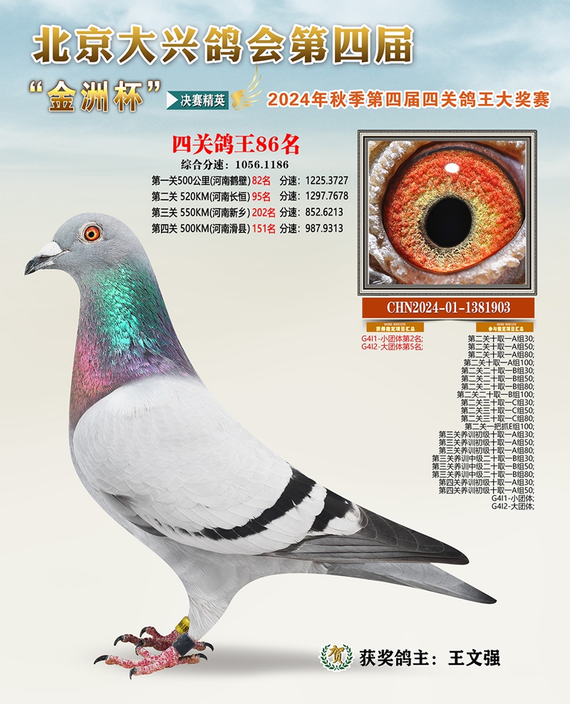 金洲杯四关综合鸽王86名