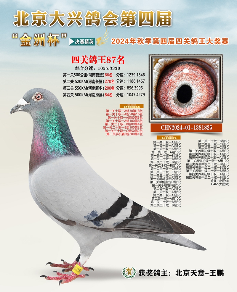 金洲杯四关综合鸽王87名