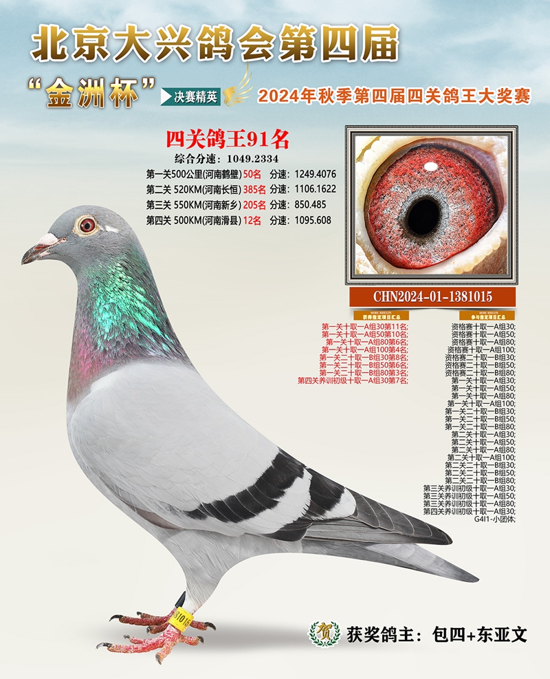 金洲杯四关综合鸽王91名