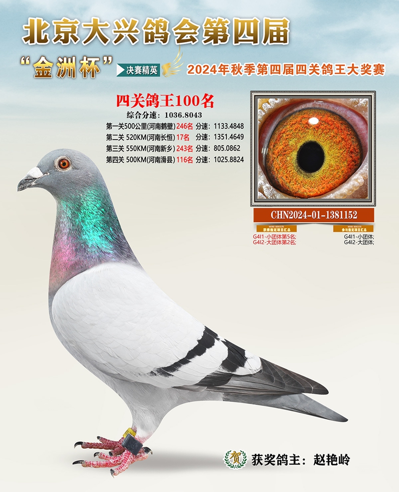 金洲杯四关综合鸽王100名
