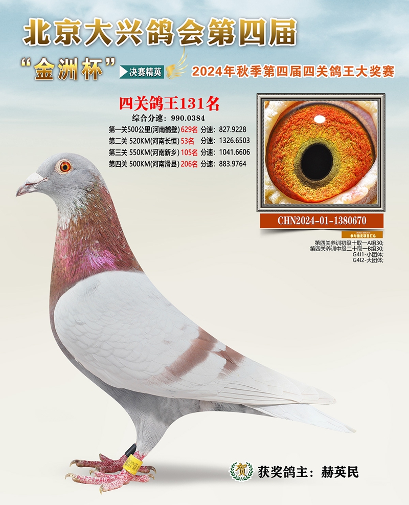 金洲杯四关综合鸽王131名