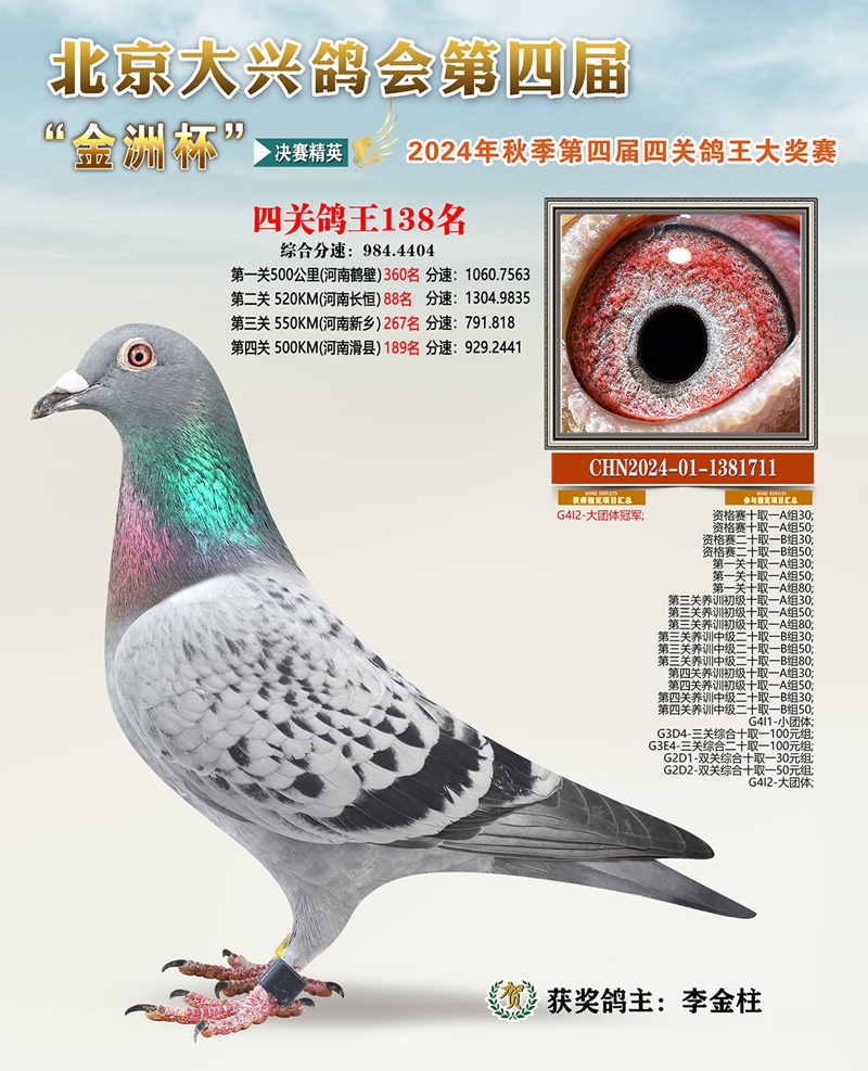 金洲杯四关综合鸽王138名