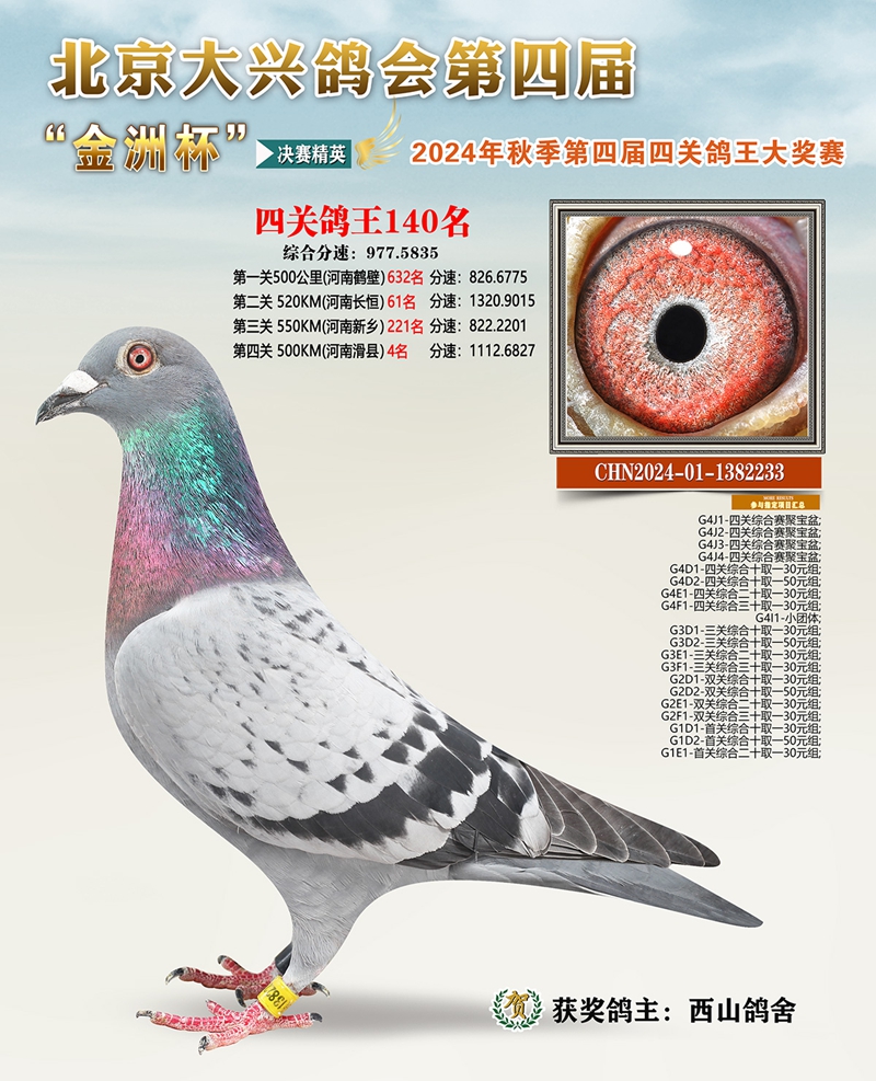金洲杯四关综合鸽王140名