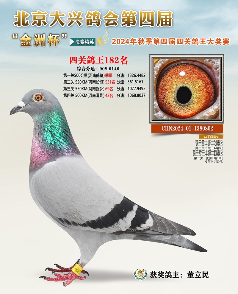 金洲杯四关综合鸽王182名