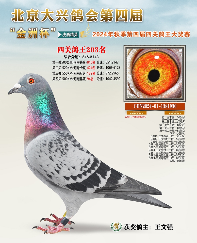 金洲杯四关综合鸽王203名