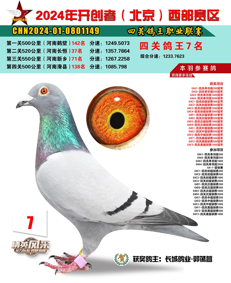 2024年开创者西部四关鸽王7名