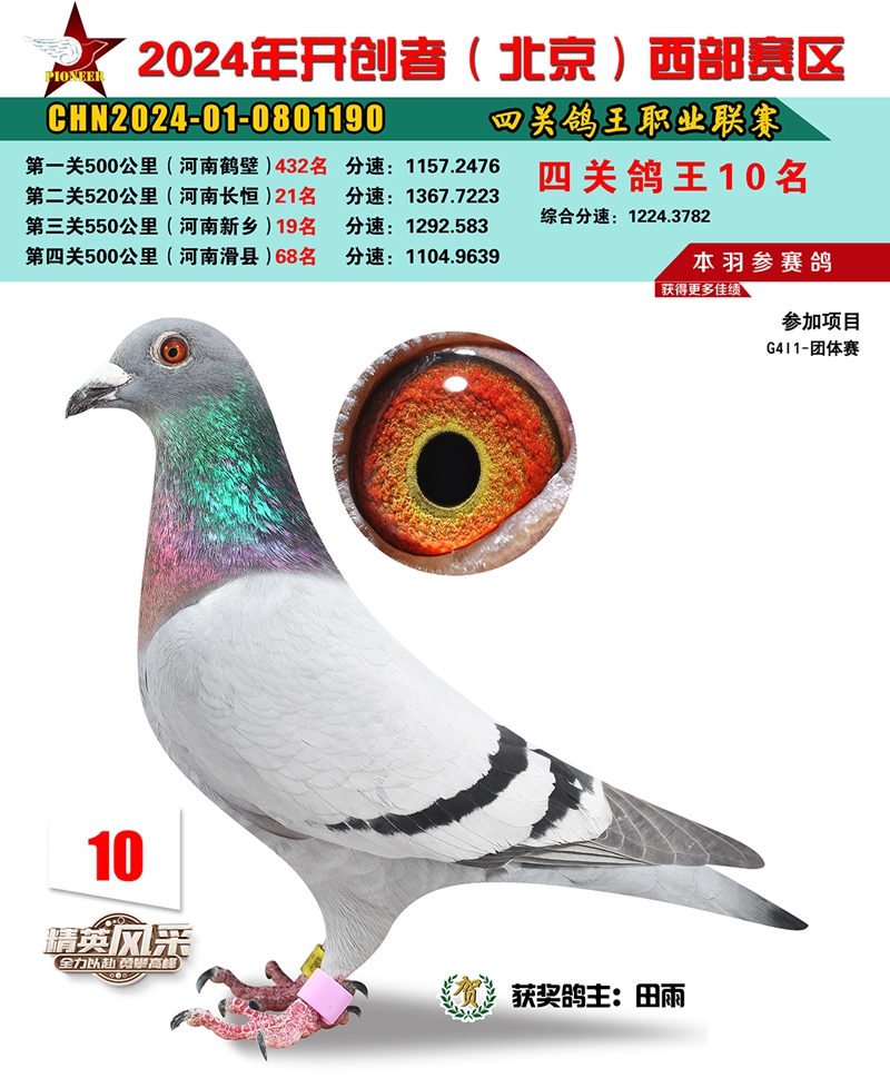 2024年开创者西部四关鸽王10名