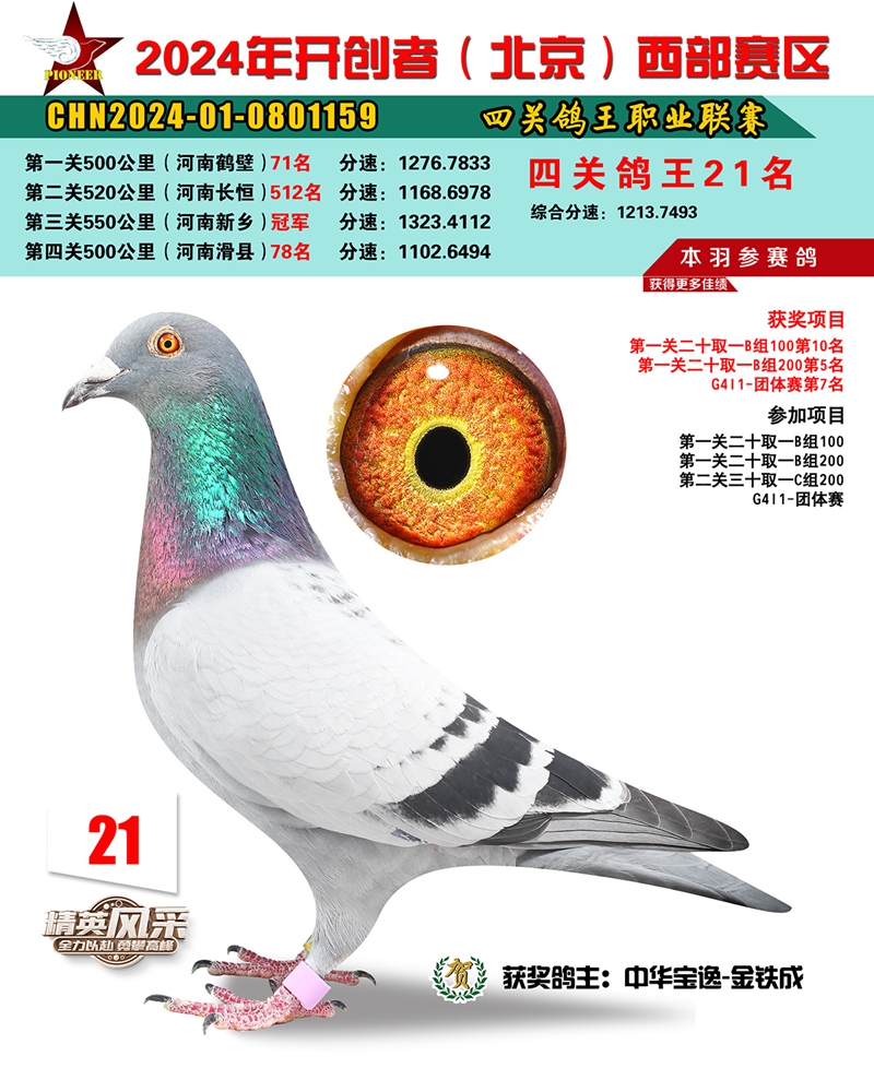 2024年开创者西部四关鸽王21名