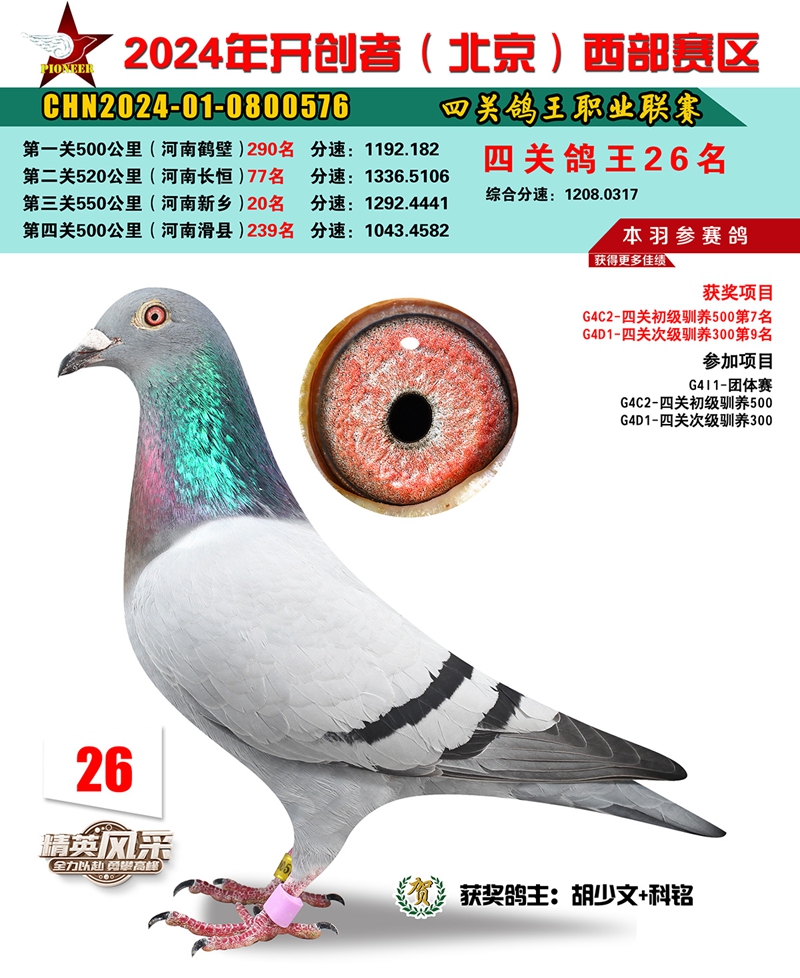 2024年开创者西部四关鸽王26名