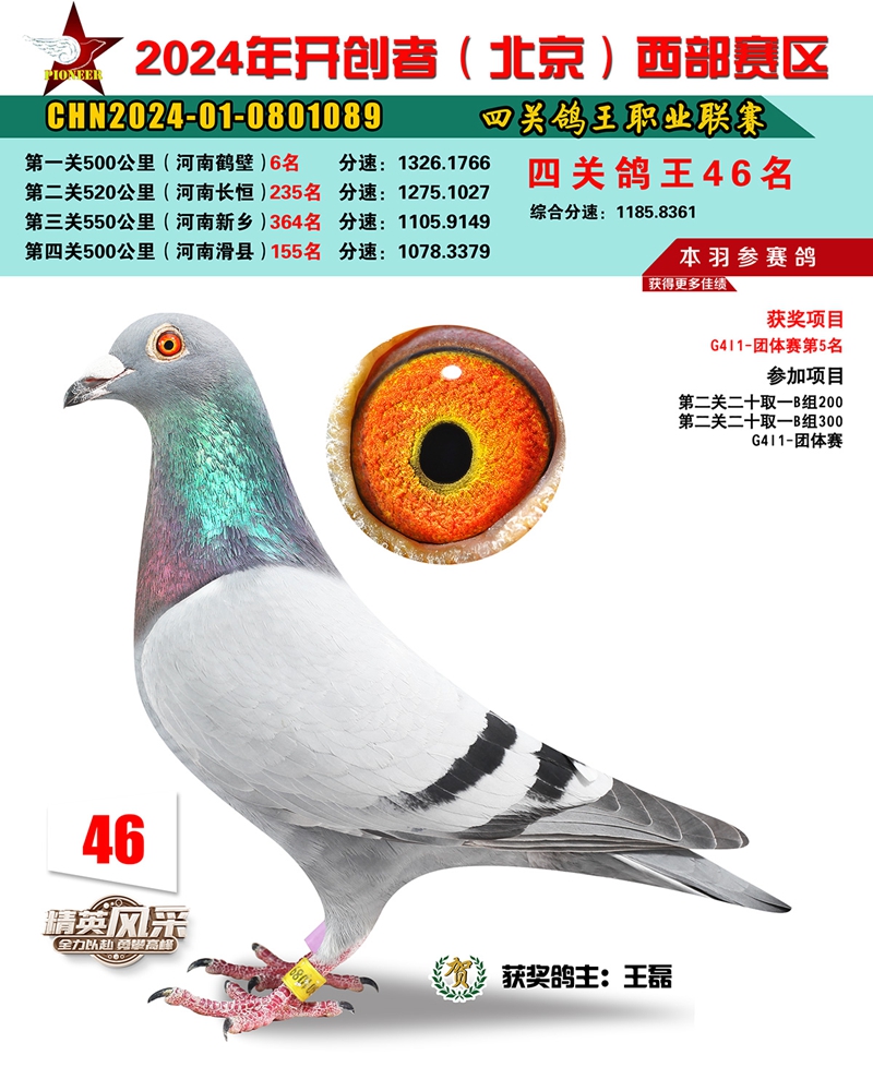 2024年开创者西部四关鸽王46名