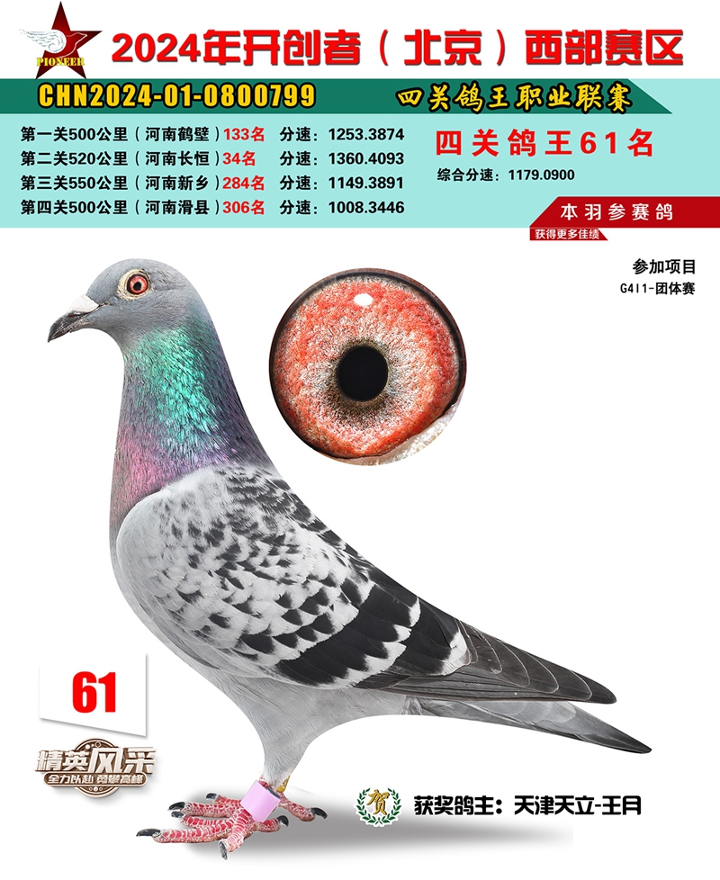 2024年开创者西部四关鸽王61名