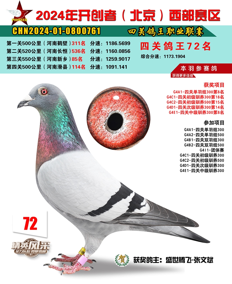 2024年开创者西部四关鸽王72名