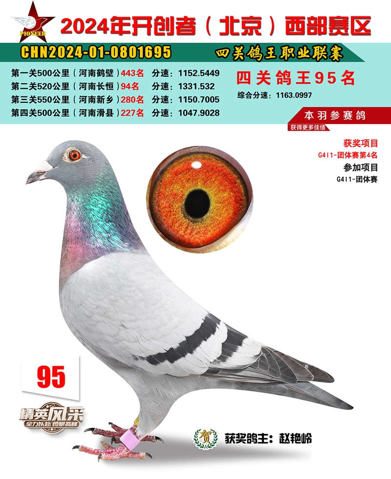 2024年开创者西部四关鸽王95名