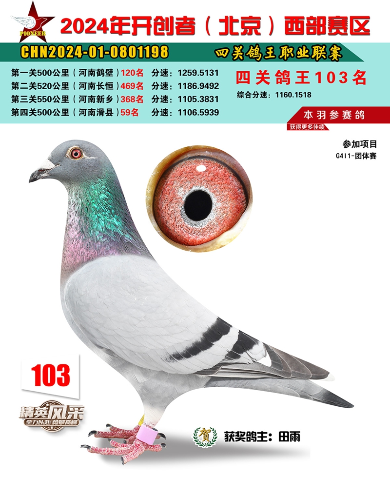 2024年开创者西部四关鸽王103名