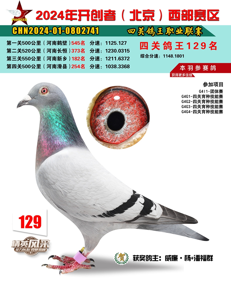 2024年开创者西部四关鸽王129名