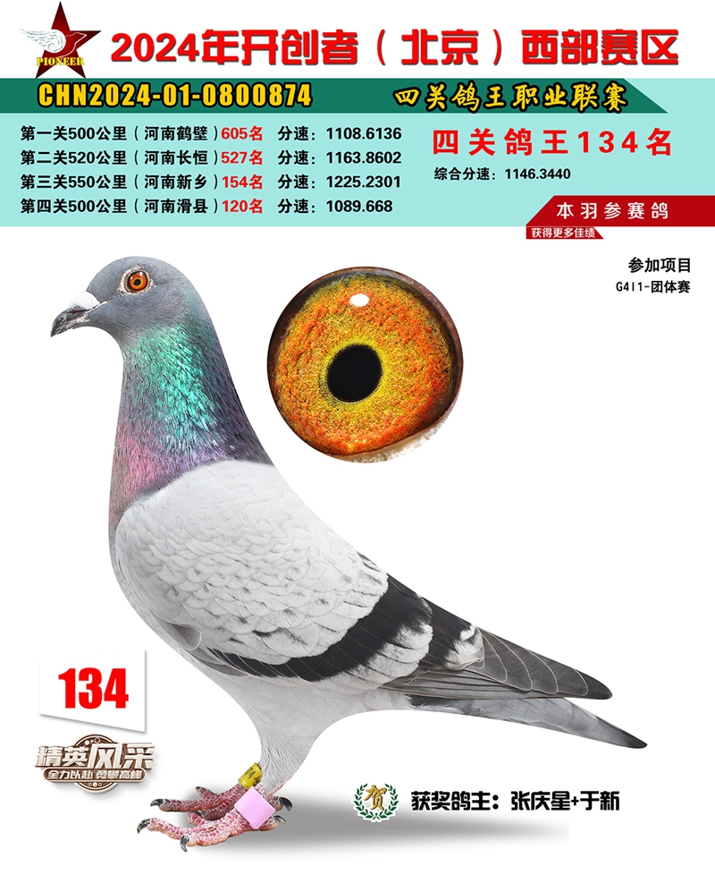 2024年开创者西部四关鸽王134名