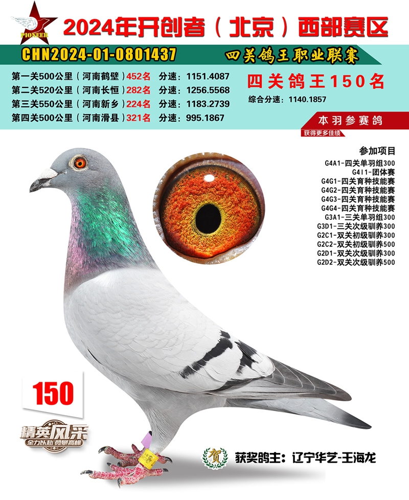 2024年开创者西部四关鸽王150名
