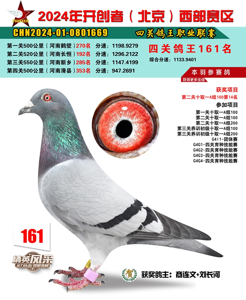 2024年开创者西部四关鸽王161名