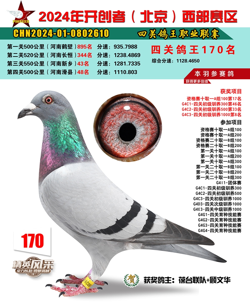 2024年开创者西部四关鸽王170名