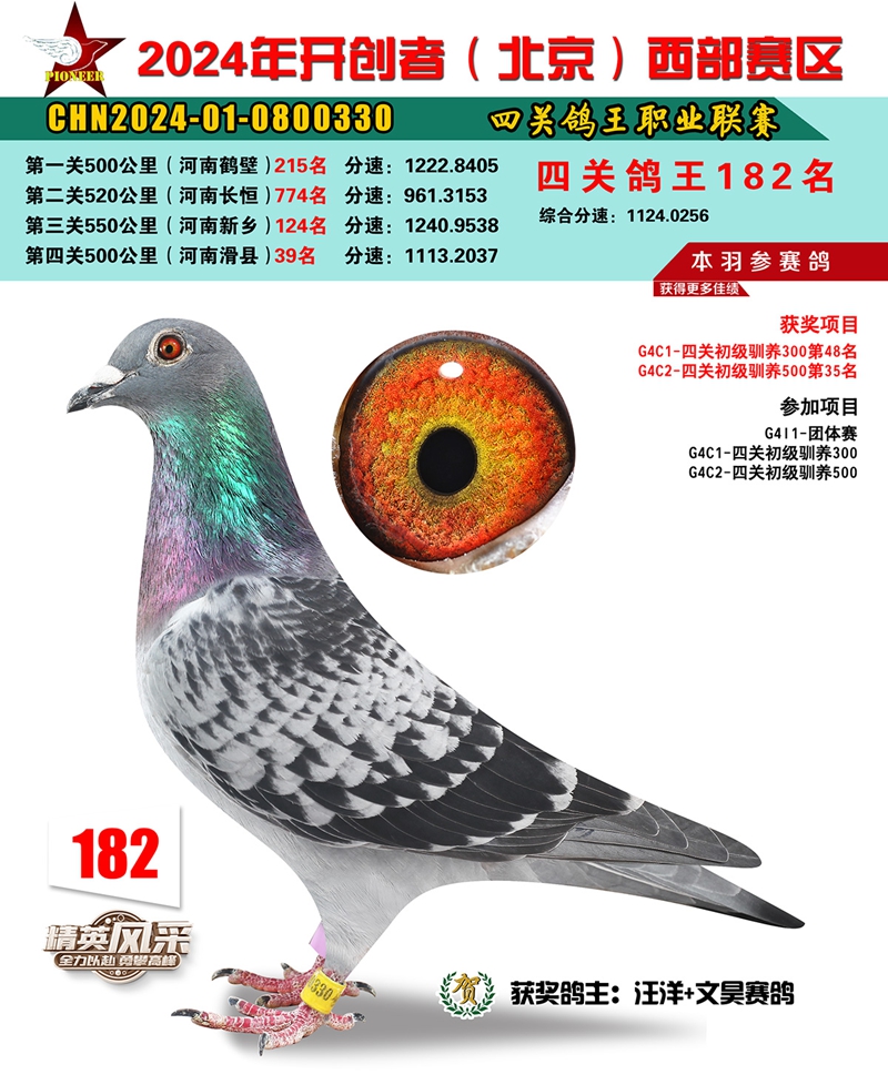2024年开创者西部四关鸽王182名