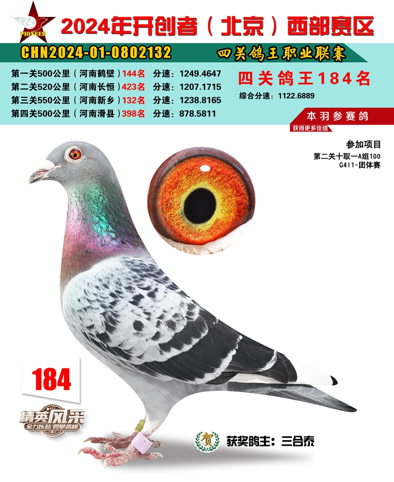 2024年开创者西部四关鸽王184名