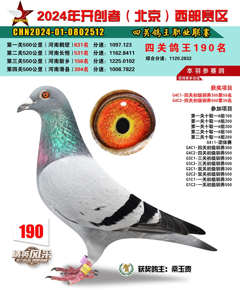 2024年开创者西部四关鸽王190名